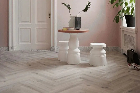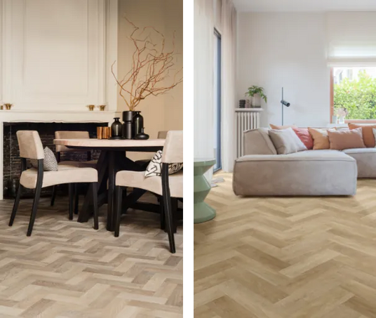 Wil je de visgraattrend in huis halen, dan kun je ook voor vinyl kiezen. De net gelanceerde collectie Wood Classics bestaat uit verschillende visgraatmotieven, is een stuk sneller gelegd en aantrekkelijker geprijsd dan een PVC visgraatvloer.